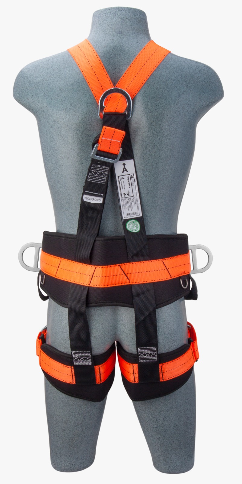 Cinto para-quedista em fita de poliéster para resgate estilo Y, possui 1 argola dorsal em “D" para retenção de quedas, 2 argolas laterais em “D" para posicionamento, 1 argola frontal em “D” para subida e descida controlada, 1 argola em “D” pélvica para resgate, suporte lombar com desenho ergonômico.